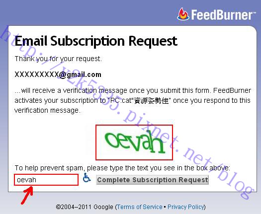 2. 輸入驗證碼,再按右邊的Complete Subscription Request
